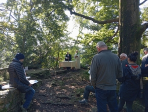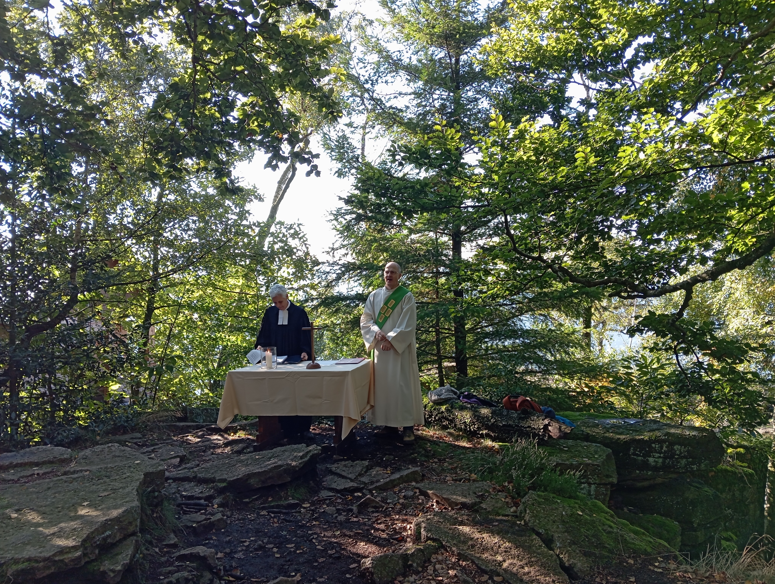 Der traditionelle Berggottesdienst am Battert, der am Sonntag, 28. September stattfand, war wieder ein besonderes Erlebnis. Pfarrerin Susanne Bahret von der evangelischen Kirche und Diakon Wolfgang Neiß von der Reblandgemeinde der katholischen Kirche feierten mit den Besuchern bei bestem Herbstwetter einen atmosphärisch und inhaltlich dichten und gehaltvollen ökumenischen Gottesdienst.