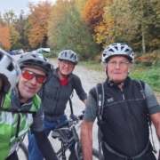 Als die Gruppe von Ebersteinburg abwärts zog, setzte so langsam die Dämmerung ein. Der letzte Trail Richtung Oos war dann bei schwierigen Lichtverhältnissen zu fahren. Sturzfrei erreichten wir nach 26 Km und 830 Hm wieder die Kletterhalle. Alle waren sich einig: Eine schöne Abendrunde.