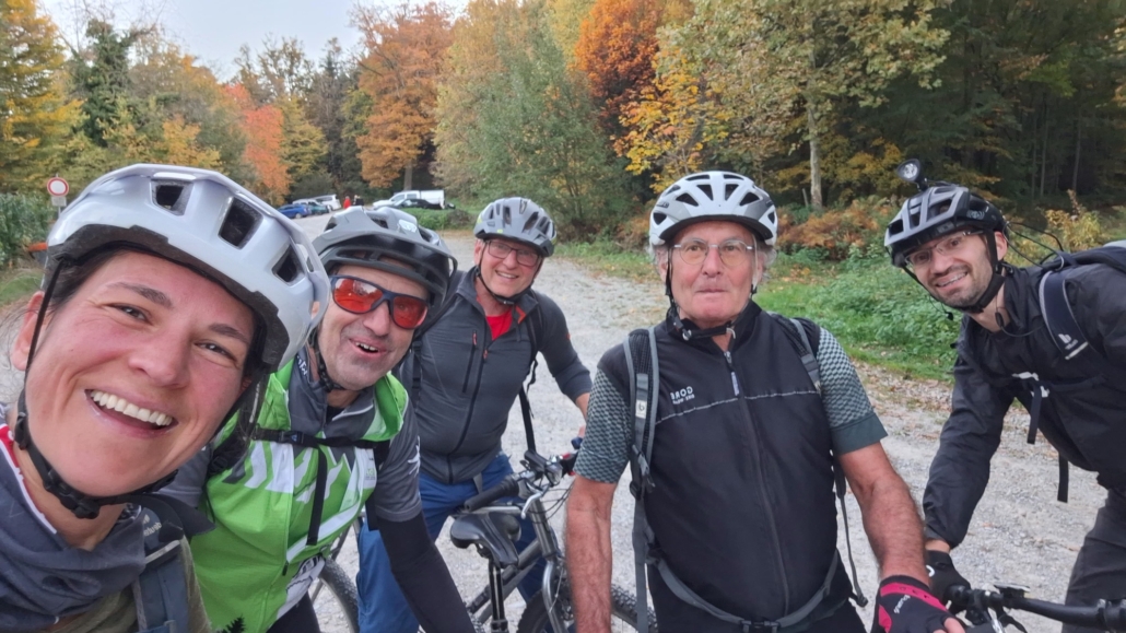 Als die Gruppe von Ebersteinburg abwärts zog, setzte so langsam die Dämmerung ein. Der letzte Trail Richtung Oos war dann bei schwierigen Lichtverhältnissen zu fahren. Sturzfrei erreichten wir nach 26 Km und 830 Hm wieder die Kletterhalle. Alle waren sich einig: Eine schöne Abendrunde.